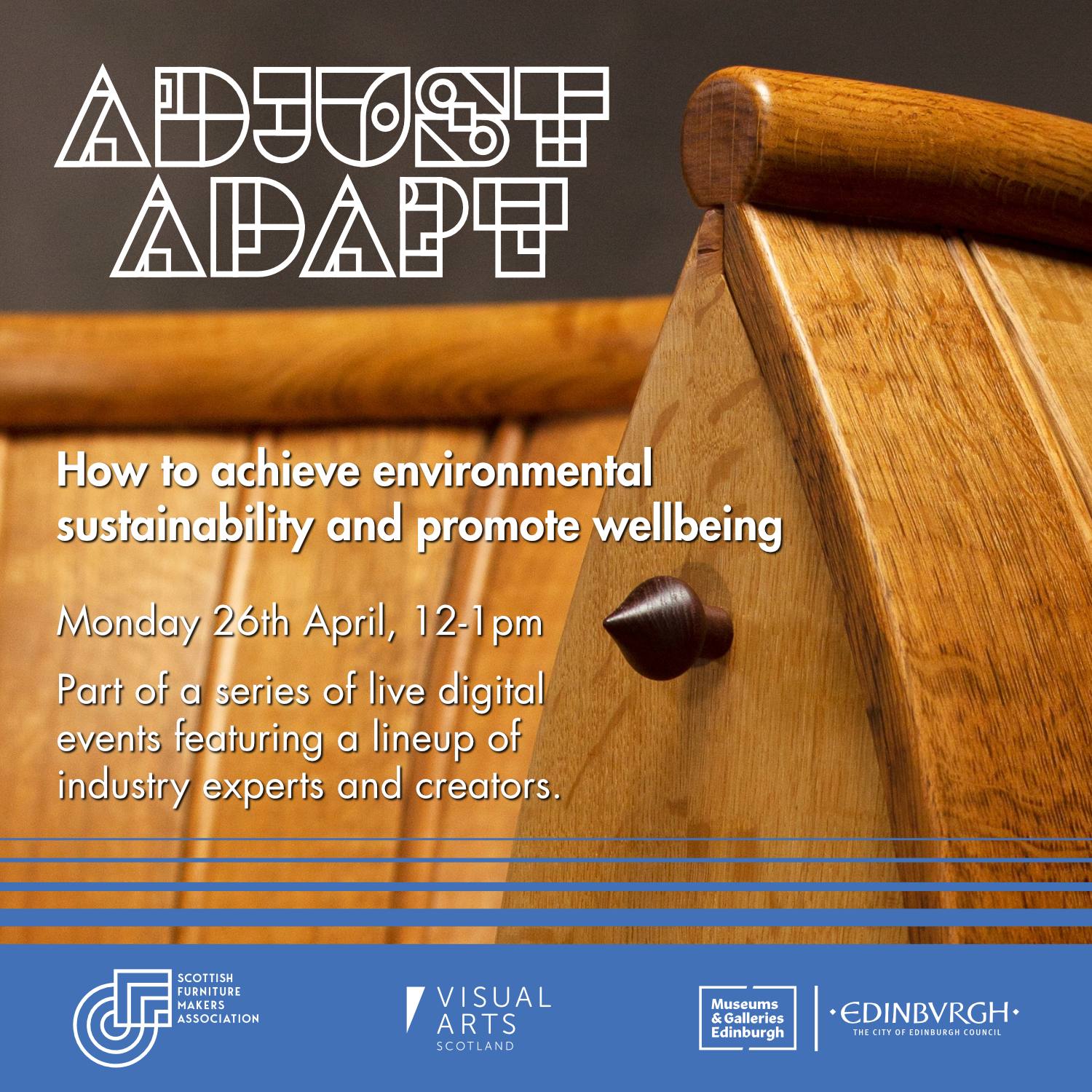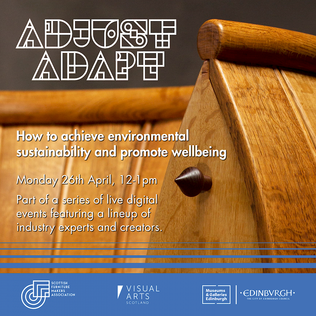 As part of the Adjust/Adapt exhibition, we're running a live digital events programme featuring a great lineup of industry experts and creators discussing a fascinating range of topics related to furniture making and sustainabiity. Attendance is free and open to all by registering in advance using links at the bottom of the exhibition page. Come and join in the discussion.